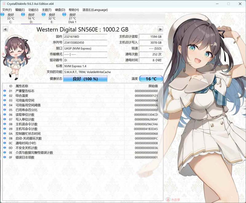 从s.m.a.r.t信息中可看到,三星t9的接口为uasp(nvme express),所以可以确定其采用了桥接芯片+nvme ssd组合的方案。