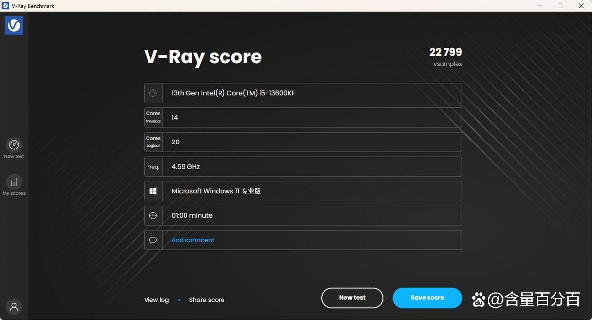 主机在v-ray cpu下的测试结果为22799。