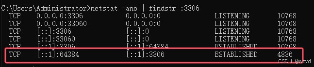netstat -ano | findstr :3306