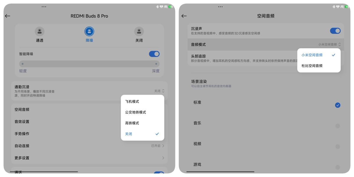 左:沉浸通勤 / 右:空间音频