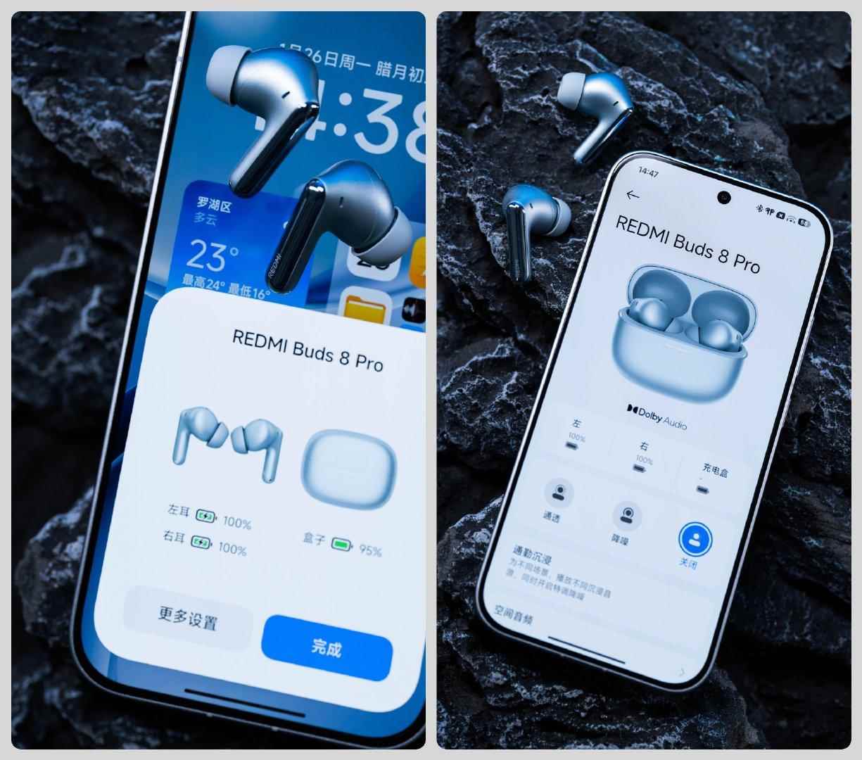 同时 redmi 还准备了通勤沉浸模式,说人话就是“播放白噪音”。支持杜比空间音频,可以双设备同时连接并智能切换。澎湃 os 设备,通过蓝牙设置就能进入耳机控制界面。