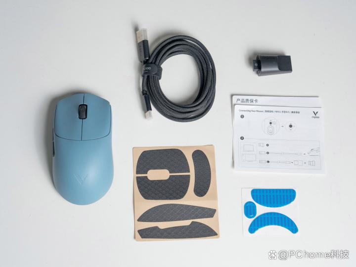 值得一提的是,雷柏vt7系列的配套配件也同步迎来升级。附赠的新一代nano微型8k接收器,体积较上一代进一步缩减,同时保留了电量指示灯设计,设备续航状态一目了然。随附的数据线则升级为8k规格带屏蔽层款式,大幅提升传输稳定性。此外,套装还包含脚贴、防滑贴及新款转换器等实用配件,为玩家提供丰富的diy调整空间与多场景适配可能,进一步完善了整体使用体验。