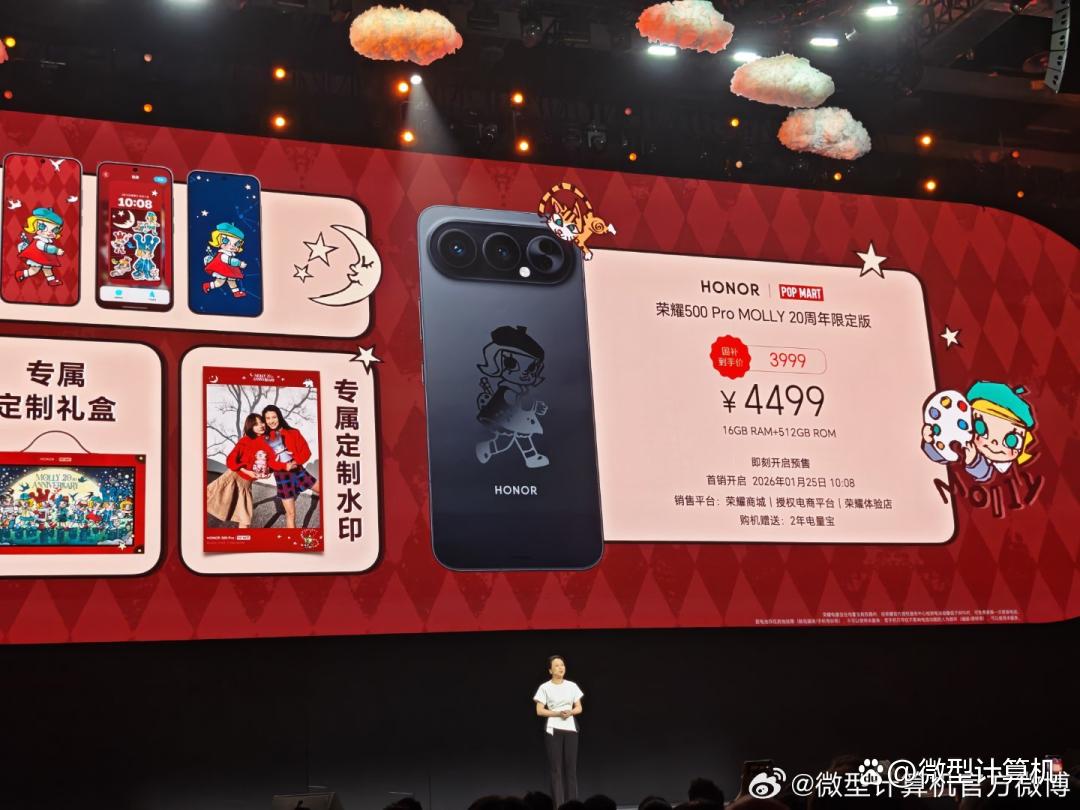 此外,荣耀500 pro molly 20周年限定版16gb+512gb,售价为4499元,国补后价格为3999元。