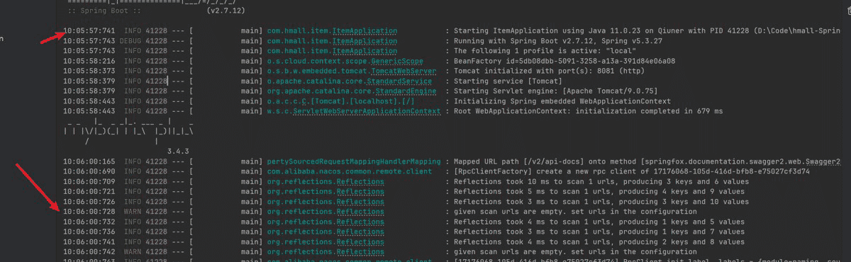 10:05:57:741 info 41228 --- [ main] com.hmall.item.itemapplication : starting itemapplication using java 11.0.23 on qiu