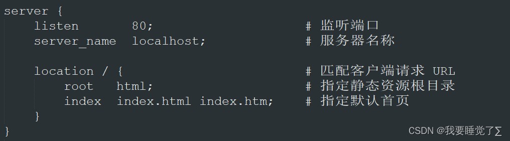 - 注意:http 中可以配置多个 server 块,每个 server 块又可以配置多个 location 块。
