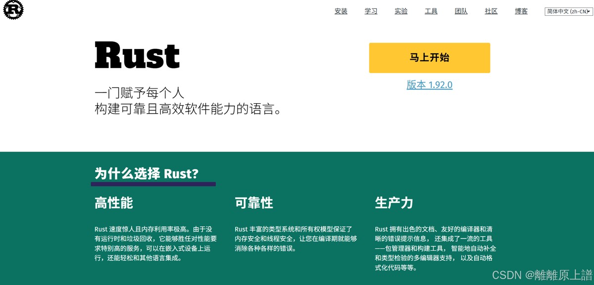从rust官网下载rustup-init.exe,建议保存到自定义开发目录(如e:\programming)。