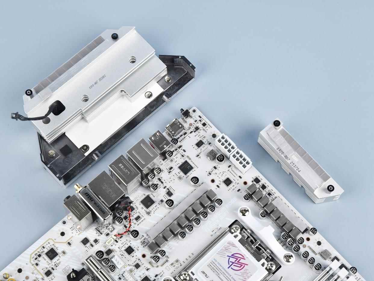 扩展型vrm散热装甲与m.2冰霜铠甲覆盖关键区域,装甲表面采用镂空设计增强散热面积,不仅提升了散热效率,还让主板整体质感更上一层楼。