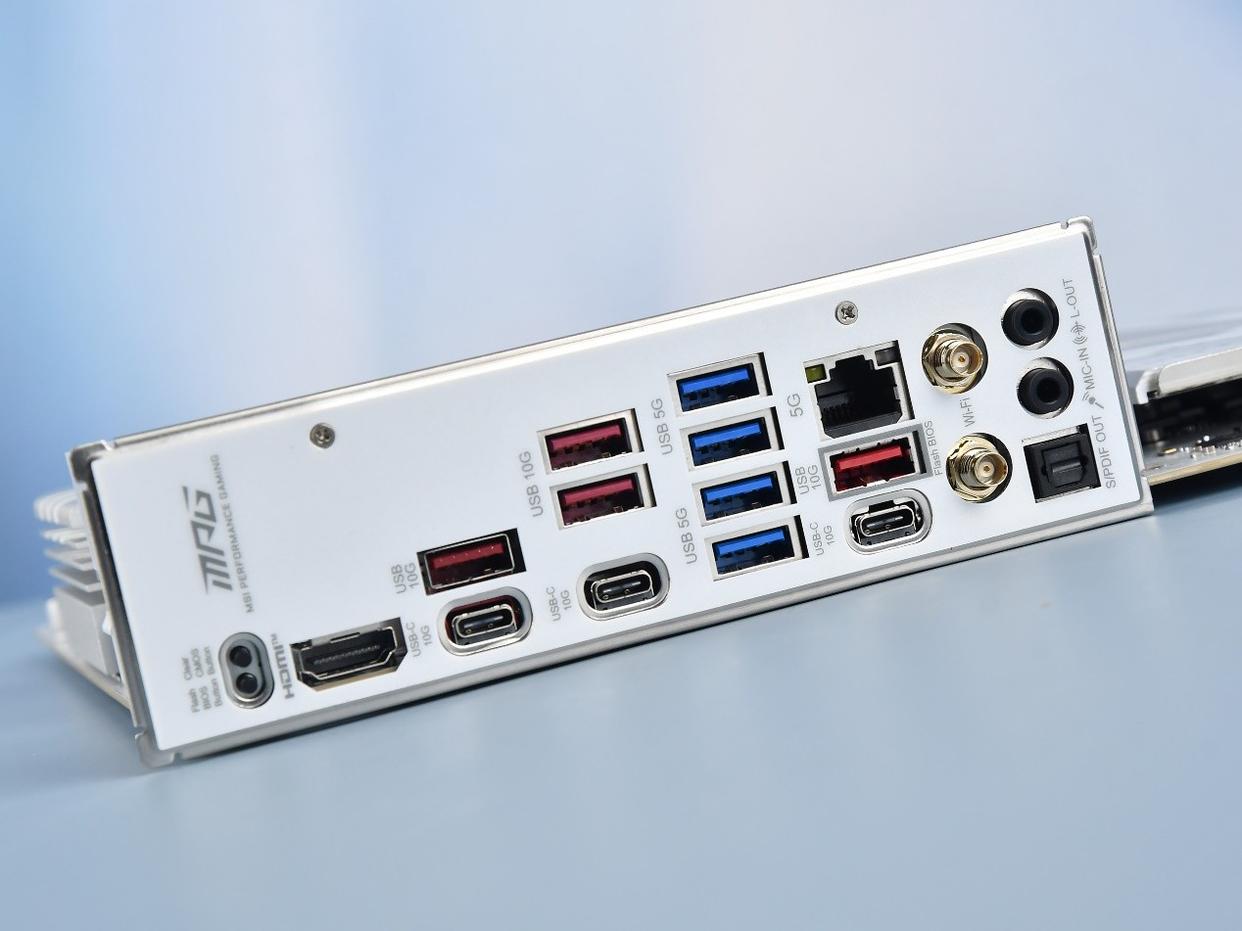 背部i/o接口丰富且布局合理,包含3×usb 10gbps、4×usb 3.2gen 2 type-a(10gbps)、4×usb 3.2 gen 1 type-a(5gbps)、以及hdmi 2.1显示接口和音频接口,能充分满足外设的扩展需求。