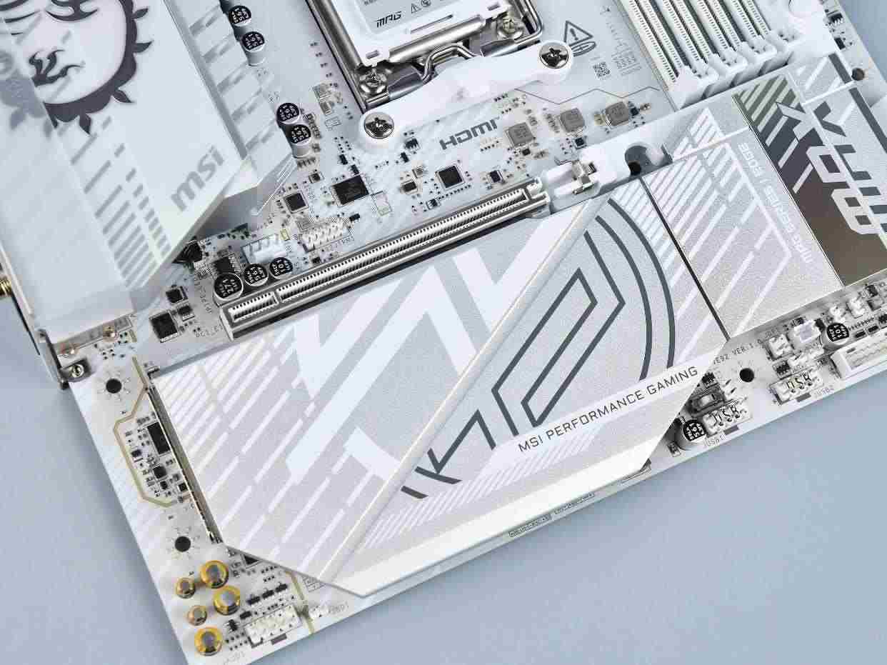 人性化设计上,微星mpg b850m edge ti max wifi刀锋 钛主板延续了微星的ezdiy理念,让装机过程变得更加轻松。第二代免工具m.2快拆卡扣无需螺丝即可完成固态硬盘的安装与拆卸,对于新手用户十分友好;显卡快拆按钮则简化了显卡的拆卸步骤,后续升级或维护时无需费力插拔。