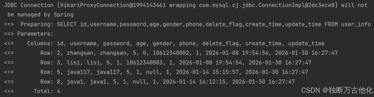 userinfomapper.selectlist(querywrapper).foreach(system.out::println);