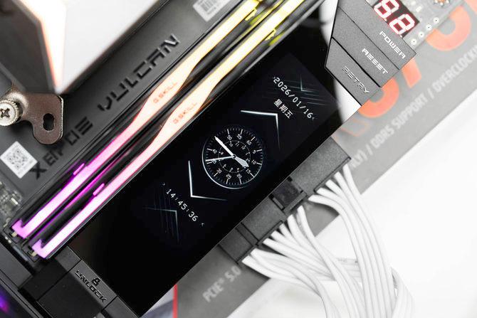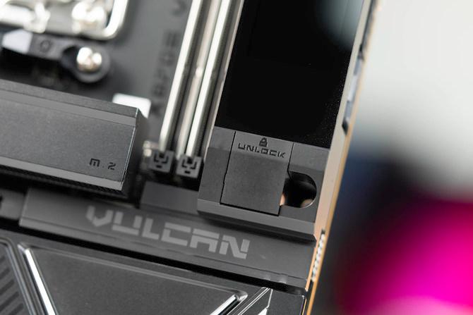 并且屏幕的底部还有一体式的第 一条pcie插槽的显卡快速释放按钮,并且按钮和智屏的设计融为一体,视觉感受更加优秀。