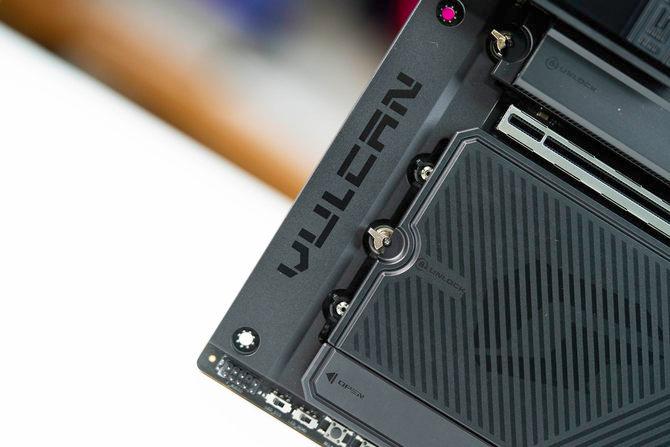 主板的下半部分也同样是全金属的散热装甲覆盖,并且支持快拆功能,安装固态硬盘也非常方便。