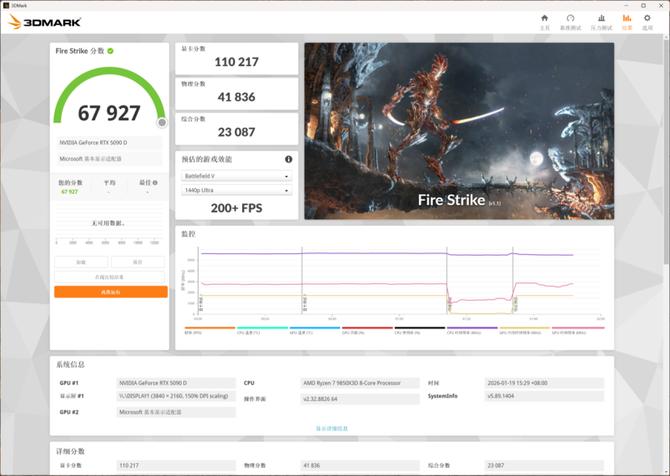 另外在衡量dx11游戏性能的firestrike测试中,分别对应的1080p/2k/4k游戏帧数,可以看到amd锐龙7 9850x3d的性能被完全释放,性能表现出色。