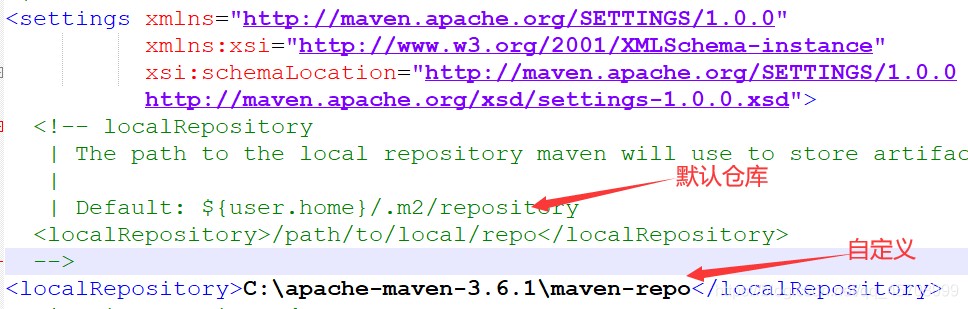 2.配置本地仓库:指定maven下载jar包存储位置