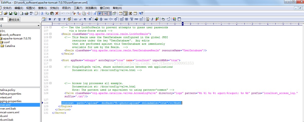 <context path="/upload" docbase="e:\photo\upload" reloadable="true"/></host>