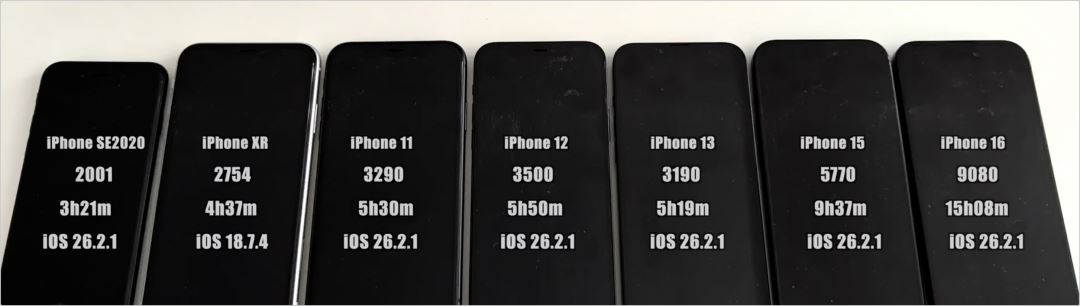 在本次测试中,所有 iphone 的跑分都和上个版本一致,但续航出现较大改变