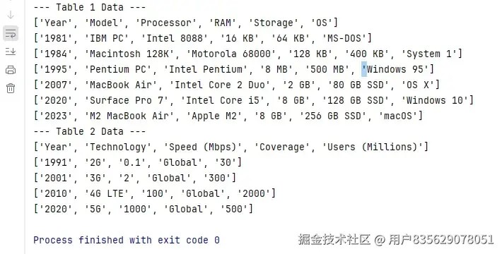 all_tables_data是一个包含所有表格数据的列表,每个表格数据又是一个包含行数据的列表,行数据再包含单元格数据的列表。