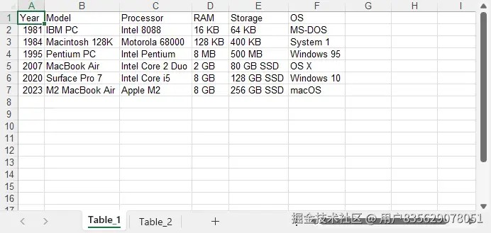 workbook.worksheets[0](默认的“sheet1”),并为其重命名;对于后续表格,则使用workbook.worksheets.add()创建新的工作表。 - 然后,我们遍历每个表格的行和单元格数据,使用