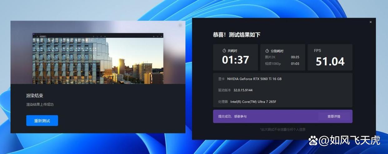 d5渲染器,当下最前沿的实时3d可视化工具。那么我们使用官方标准测试场景(含复杂材质、灯光、反射与环境光遮蔽),实测完成整场景渲染仅耗时1分37秒,帧率稳定维持在51.04fps。