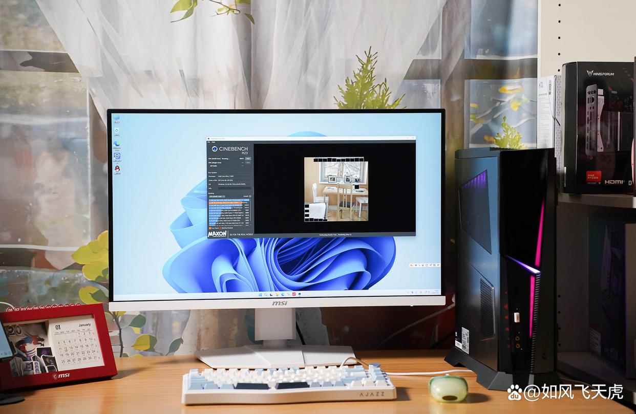 在外观与体验上,海皇戟as同样表现出色。白色流线型机身搭配前脸可编程rgb灯效,配合显卡顶部动态彩光,电源风扇动态彩光,在桌面角落也能成为一道科技美学风景线。其紧凑设计不占空间,无论是置于显示器左侧还是右侧,都能保持整洁有序的布局和靓丽的彩光效果。搭配微星mag 274qrfw x32高刷电竞显示器后,320hz高刷新率与fast ips面板带来丝滑流畅的画面体验,让竞技对战或影音娱乐都酣畅淋漓。