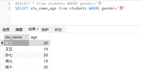 这里可以用#注释代码,查询的列名要用英文格式的逗号隔开