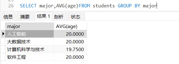 这里是按照major分组产生一个表格,并计算平均年龄