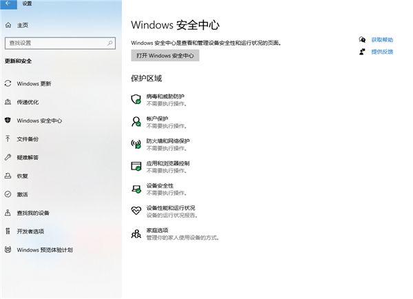 打开windows设置 → 点击左侧的“更新和安全”→ 点击windows安全中心进入