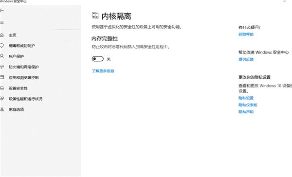 然后继续点击左侧 → 设备安全性 → 内核隔离详细信息 → 所有通通关掉下拉到底全部关掉【至此windows安全中心所有设置完成】