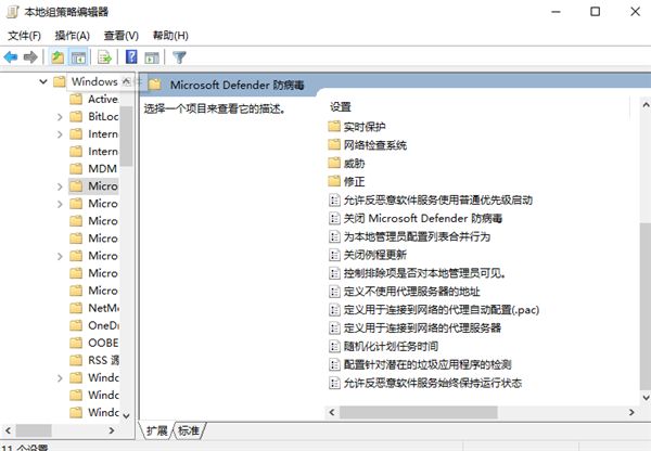 点击“管理模板/windows组件/microsoft defender 防病毒”进行以下两项操作