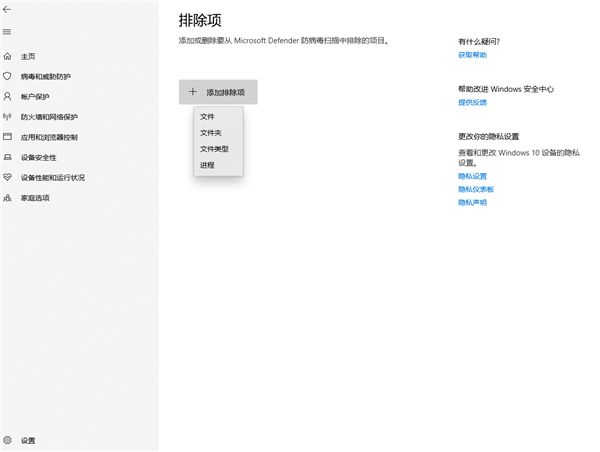排除项(microsoft defender 防病毒不会扫描已排除的项目。)点击添加或删除排除项