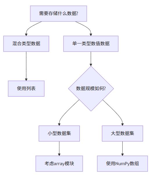 - 通用性 vs 专业性:日常任务用列表,专业计算用数组