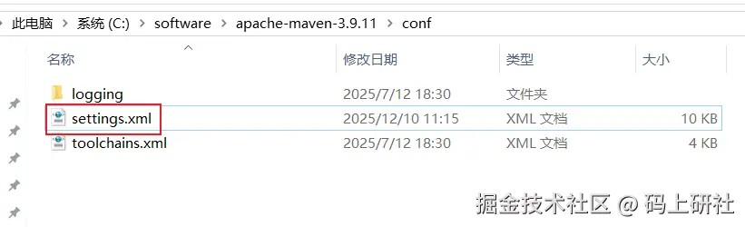 打开安装的maven目录,进入到conf/settings.xml文件中,使用记事本打开: