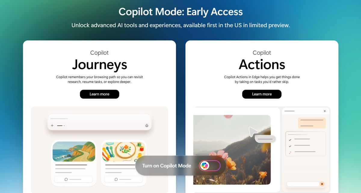 除此之外,微软最近还在 edge 浏览器中加入了 copilot 模式,包括“copilot 旅程”和“copilot 操作”。