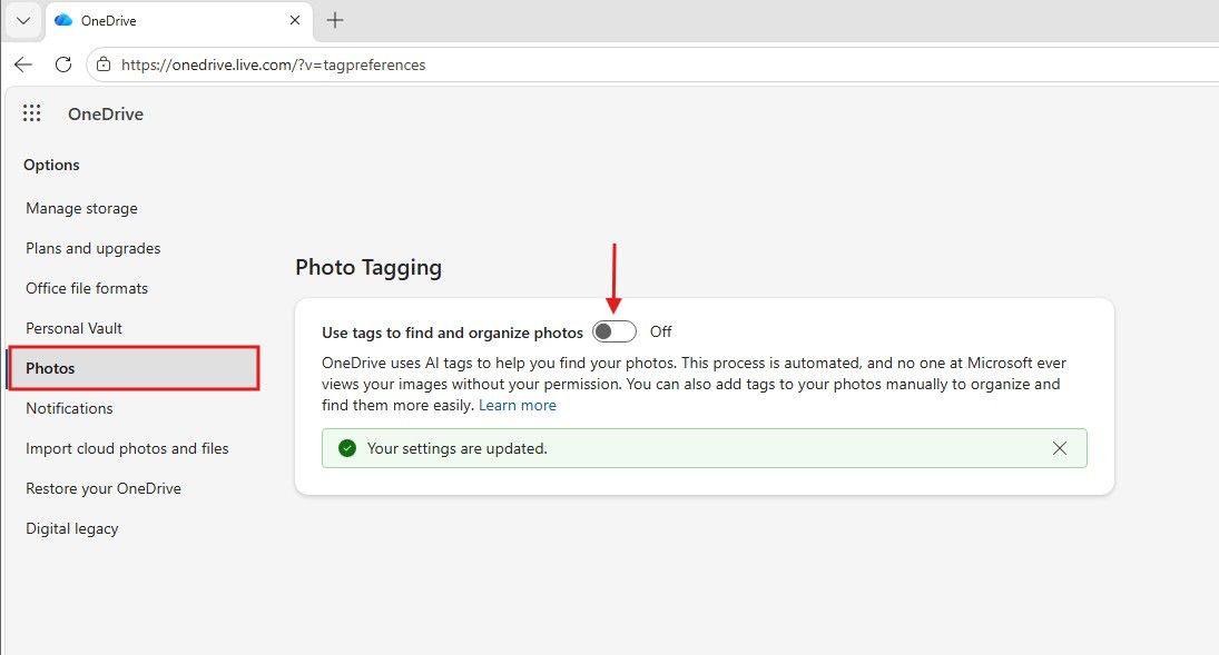 onedrive 应用会使用 ai 扫描上传到云的照片,该功能可以通过以下步骤关闭: