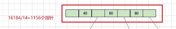 可以算出一条数据的索引所占空间为8+6=14byte,进而可以算出根节点可以存储16184/14=1156个指针。