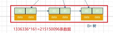 我们假设一行数据有100个字节,那么一个叶子节点可以存储16184/100≈161条数据。与第二层的指针数量相乘以后,可以得出总数据量为1336336*161=215150096条数据,大约2亿多条。