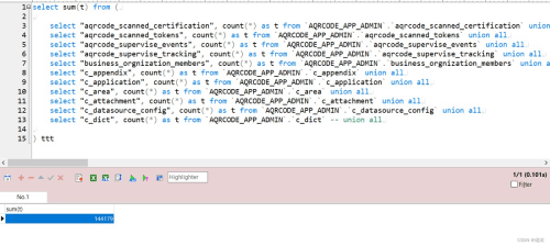查询出来的结果拷贝出来,去掉最后一行的 union all