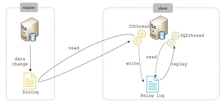 - slave重做中继日志中的事件,将改变反映它自己的数据。
