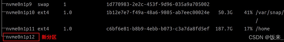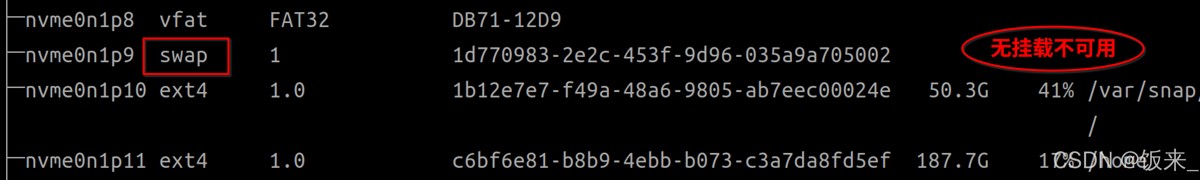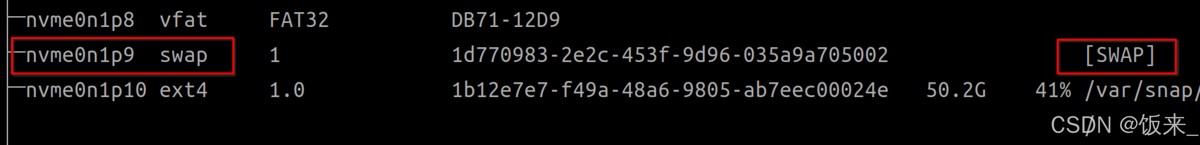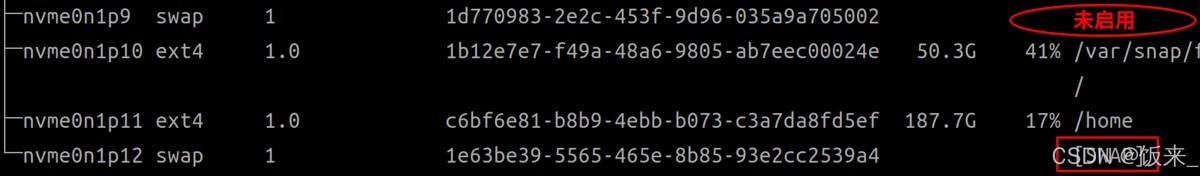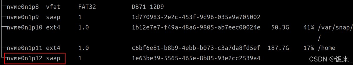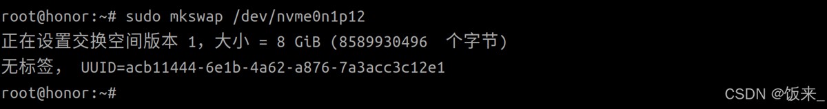 sudo mkswap /dev/nvme0n1p12 # 换成自己的分区名