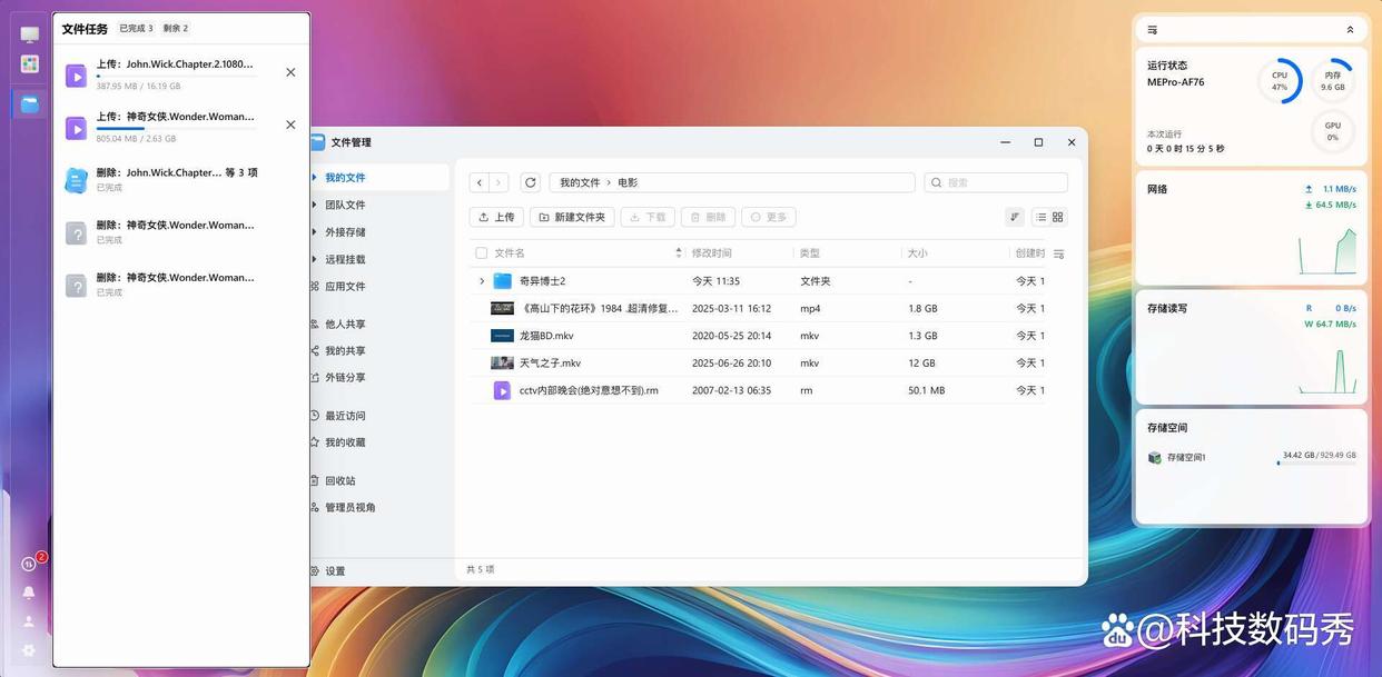 至于电脑端和零刻me pro的文件传输,你可以直接在浏览器里飞牛os文件管理里面直接上传下载,也可以下载飞牛同步客户端,完成本地和nas之间的双向同步。