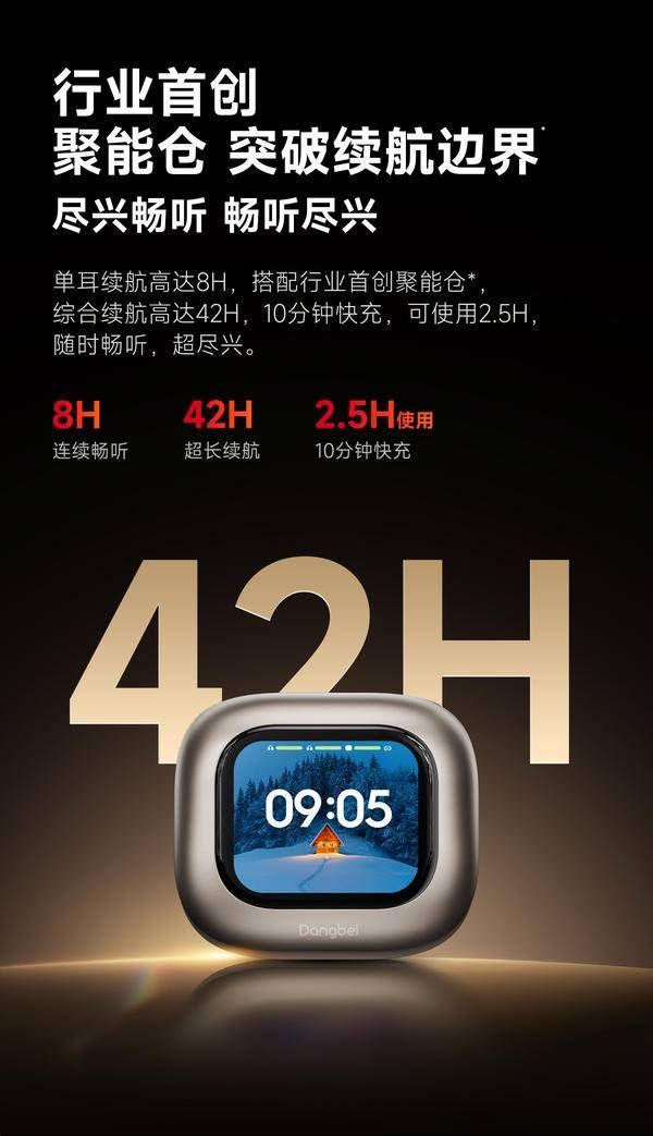 针对现代人的电量焦虑,当贝耳机 air 1 采用行业更安全的钢壳电池,单次聆听时长可达 8 小时,配合行业首创聚能仓,综合续航长达 42小时。耳机支持快充技术,充电 10 分钟即可使用 2.5 小时,彻底告别电量焦虑。