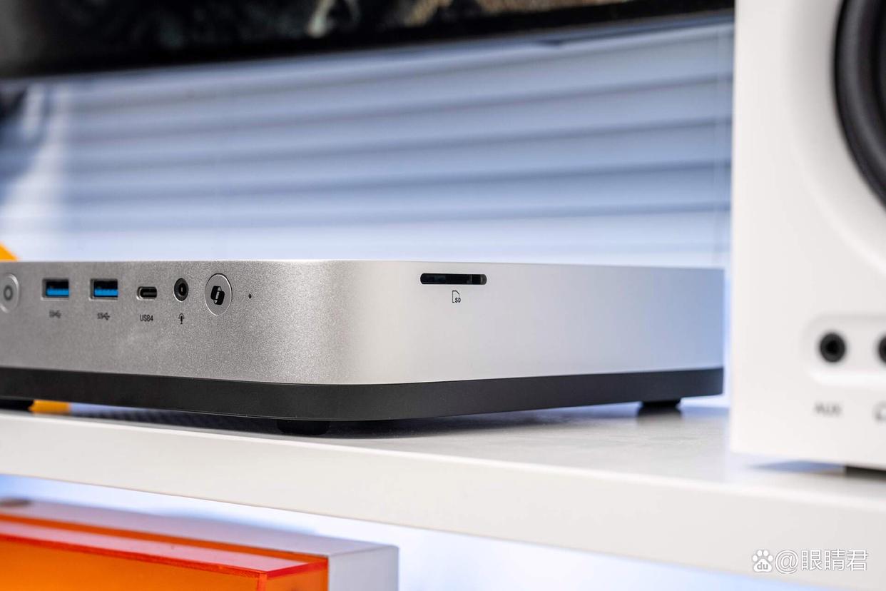机身尺寸为19.5x19.5x4.5cm,比常见的迷你主机略大一圈,考虑到性能和其出色的扩展性,这个尺寸并不算大。