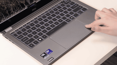 单手掀开屏幕,人脸识别或指纹解锁秒速进入系统,一气呵成。其超大心流触控板是此次体验的一大惊喜——玻璃材质顺滑无比,面积阔绰,精准的多点触控和快捷按钮(计算器和msi center s),让我在90%的场景下忘记了鼠标的存在。