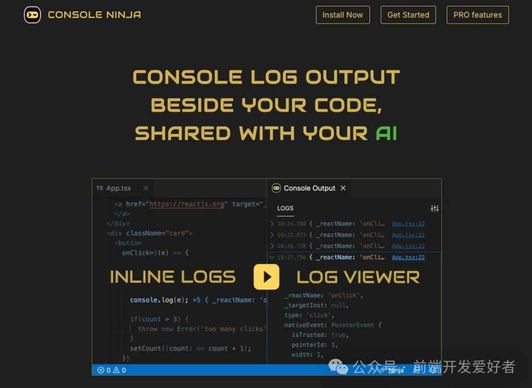 以前 console.log 得切到 chrome 里瞄一眼,现在返回值、报错、网络请求像弹幕一样实时贴在右边,眼都不用挪。