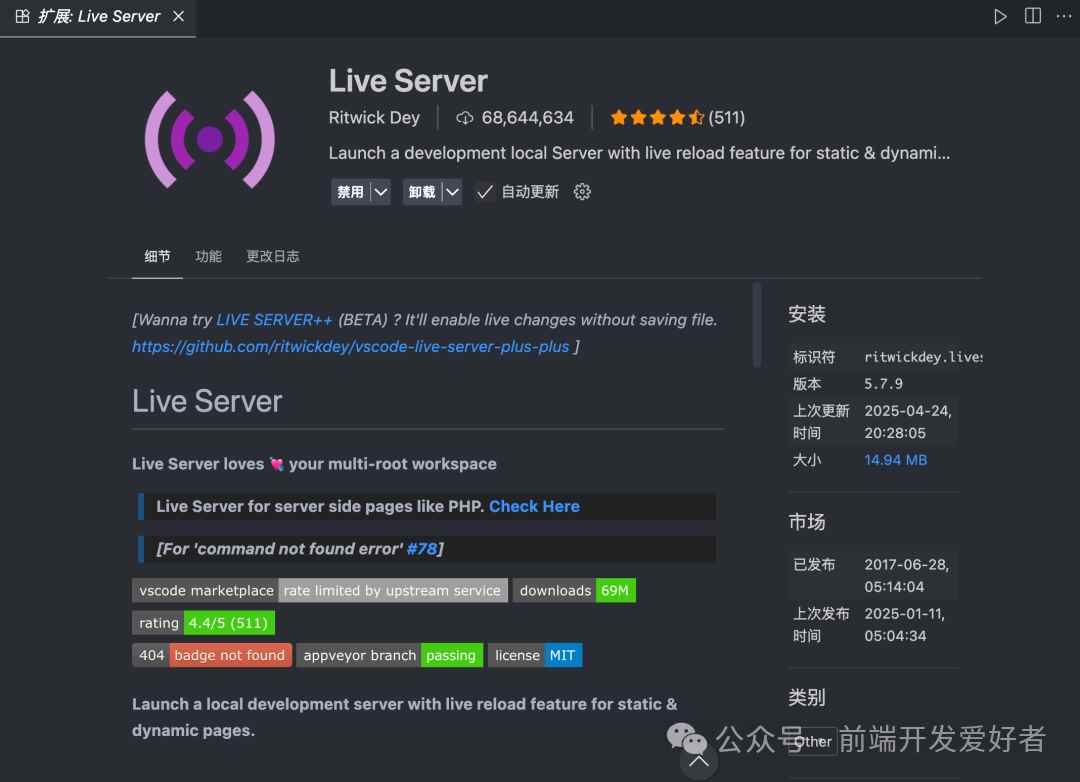 右下角点一下「go live」,静态页直接跑在本地服务器,保存就刷新,手机同局域网也能访问,调样式摸到鱼都方便。