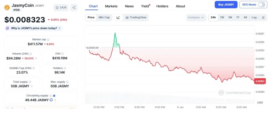 所以,今天为什么jasmycoin (jasmy) 的价格下跌?以下是分析: