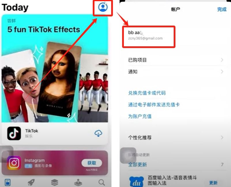 打开appstore,点击右上角的小人头,这里显示的账号不能是中国大陆的id,必须是海外的。