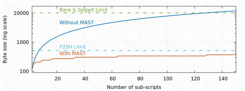 - 通过部分披露保护隐私: 在执行交易时,只有实际满足的条件(激活的树的分支)才会显示在区块链上。这与传统方法相反,传统方法中交易脚本中的所有可能条件都是可见的。