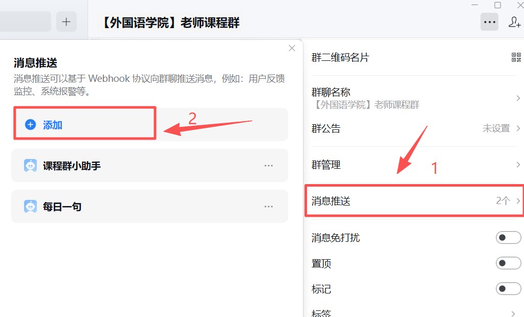 添加消息推送助手