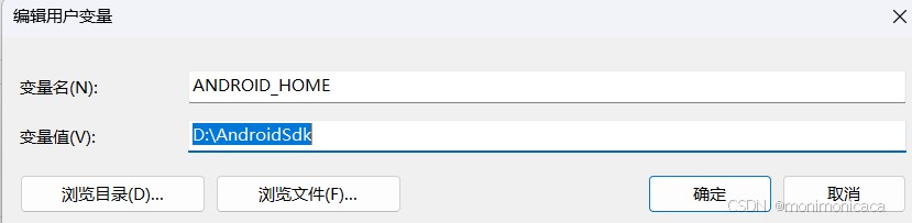 在用户环境变量中配置android sdk的安装位置,flutter会根据这个来寻找android sdk,注意是在用户环境变量下。这里配置完之后,重启一下电脑。